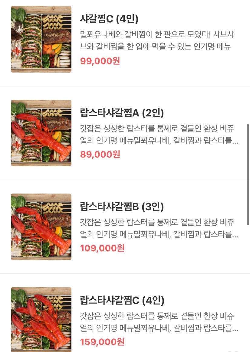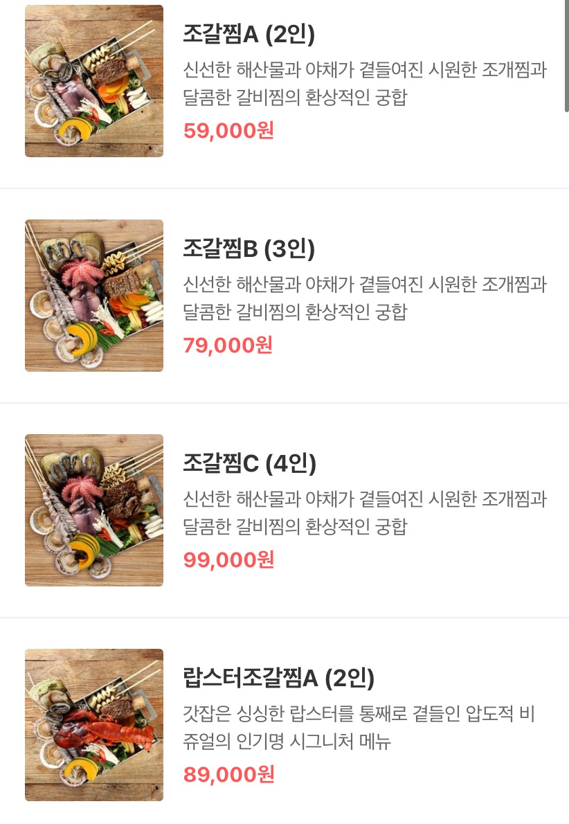 조갈찜 외에도 샤갈찜 랍스타찜도 있으니,