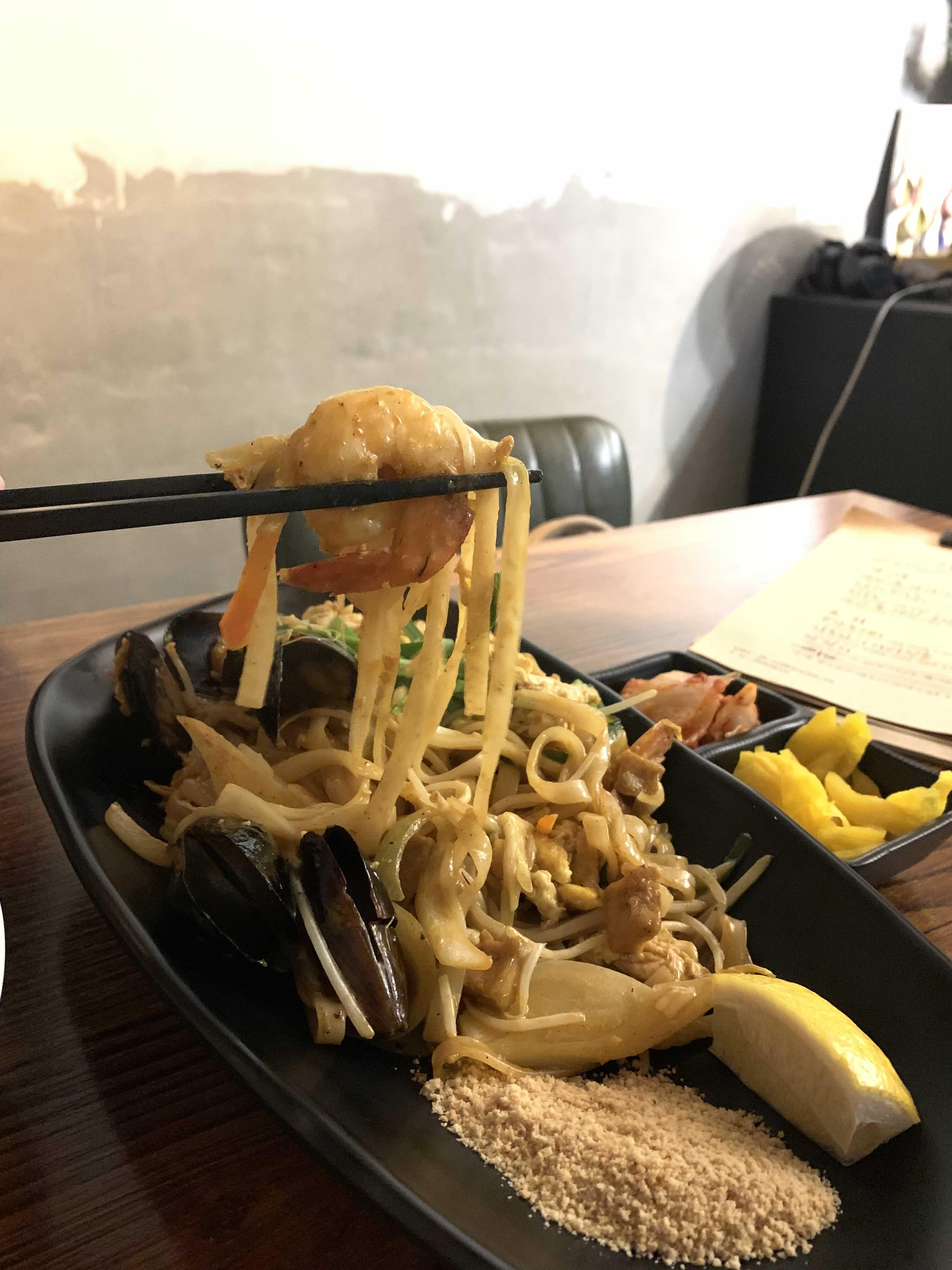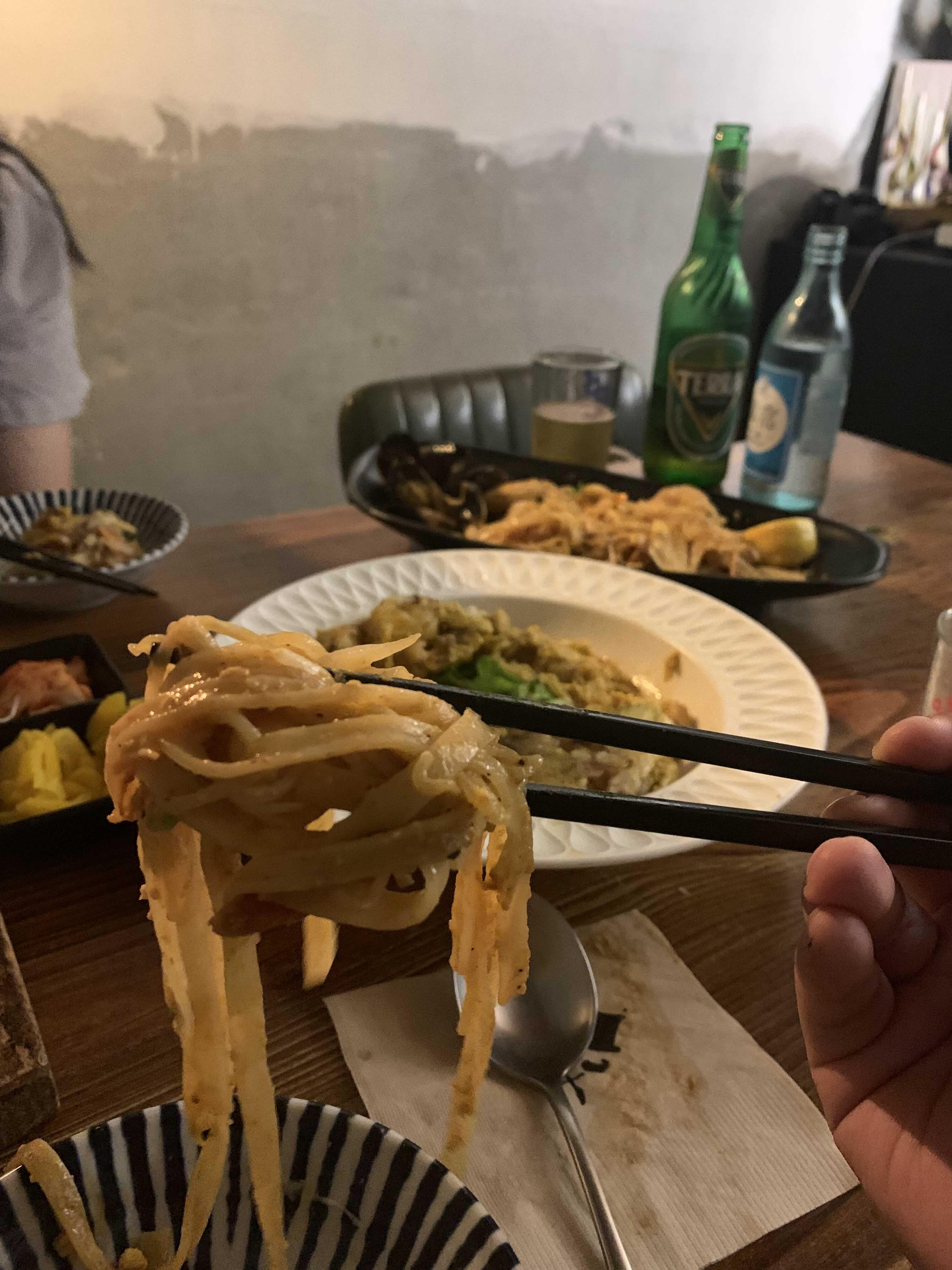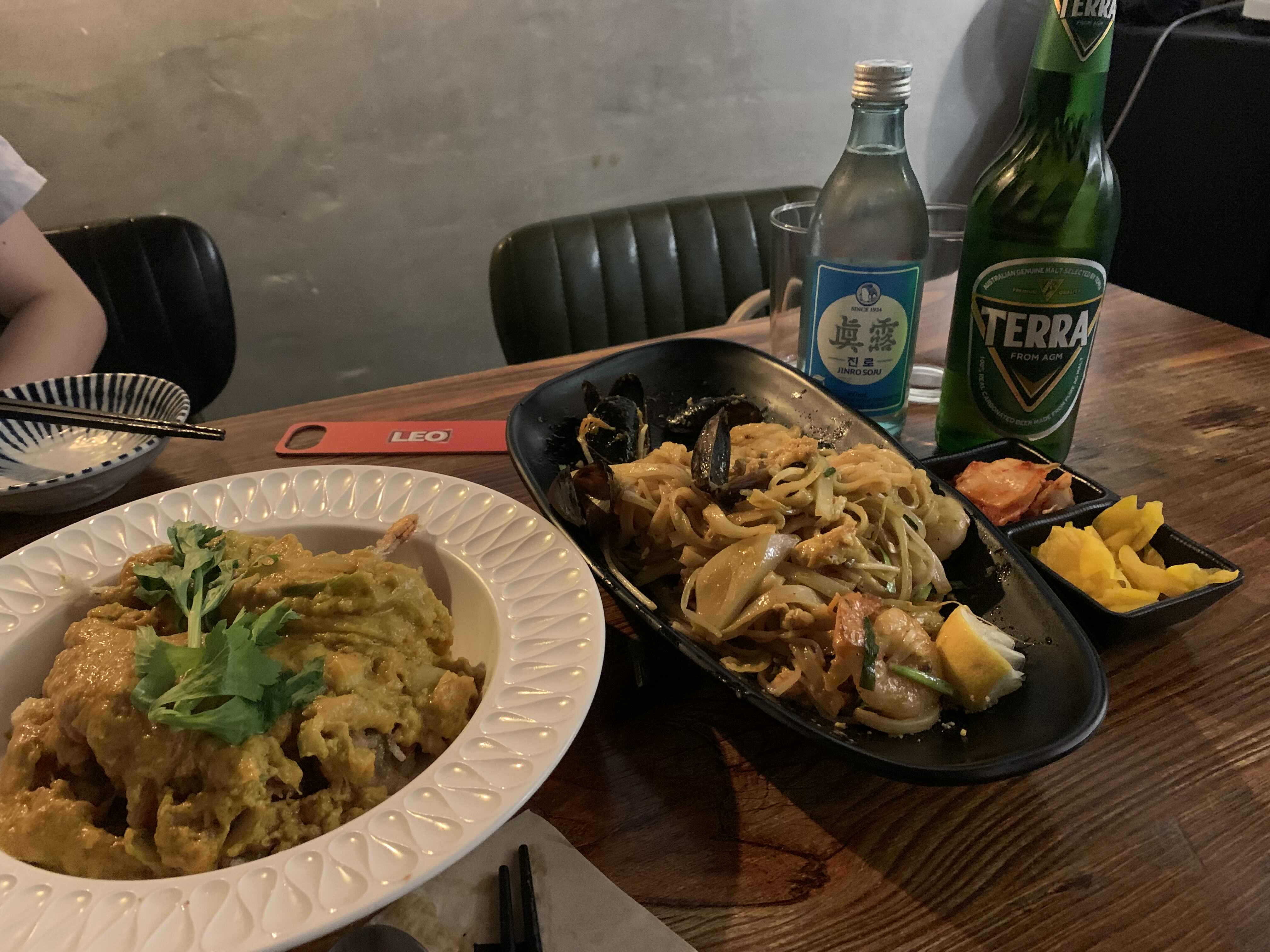 그래서 뿌팟봉커리+팟타이+규카츠를 시켰어요